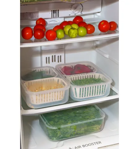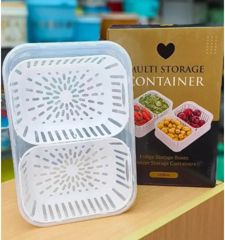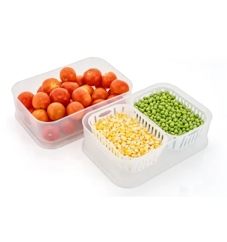 2-Compartment Fridge & Kitchen Storage Box | Food-Grade Organizer with Drainage | Stackable & Space-Saving