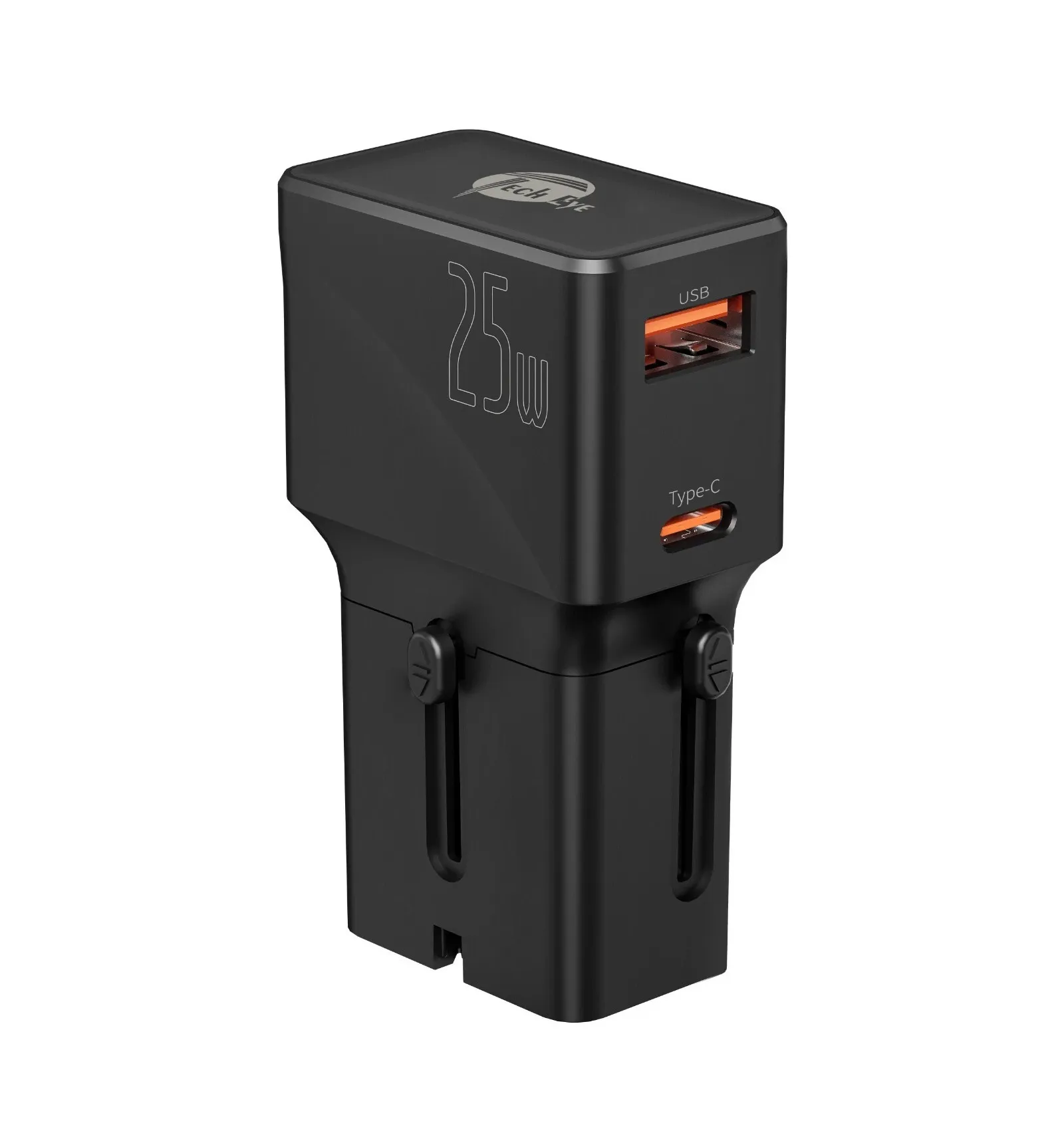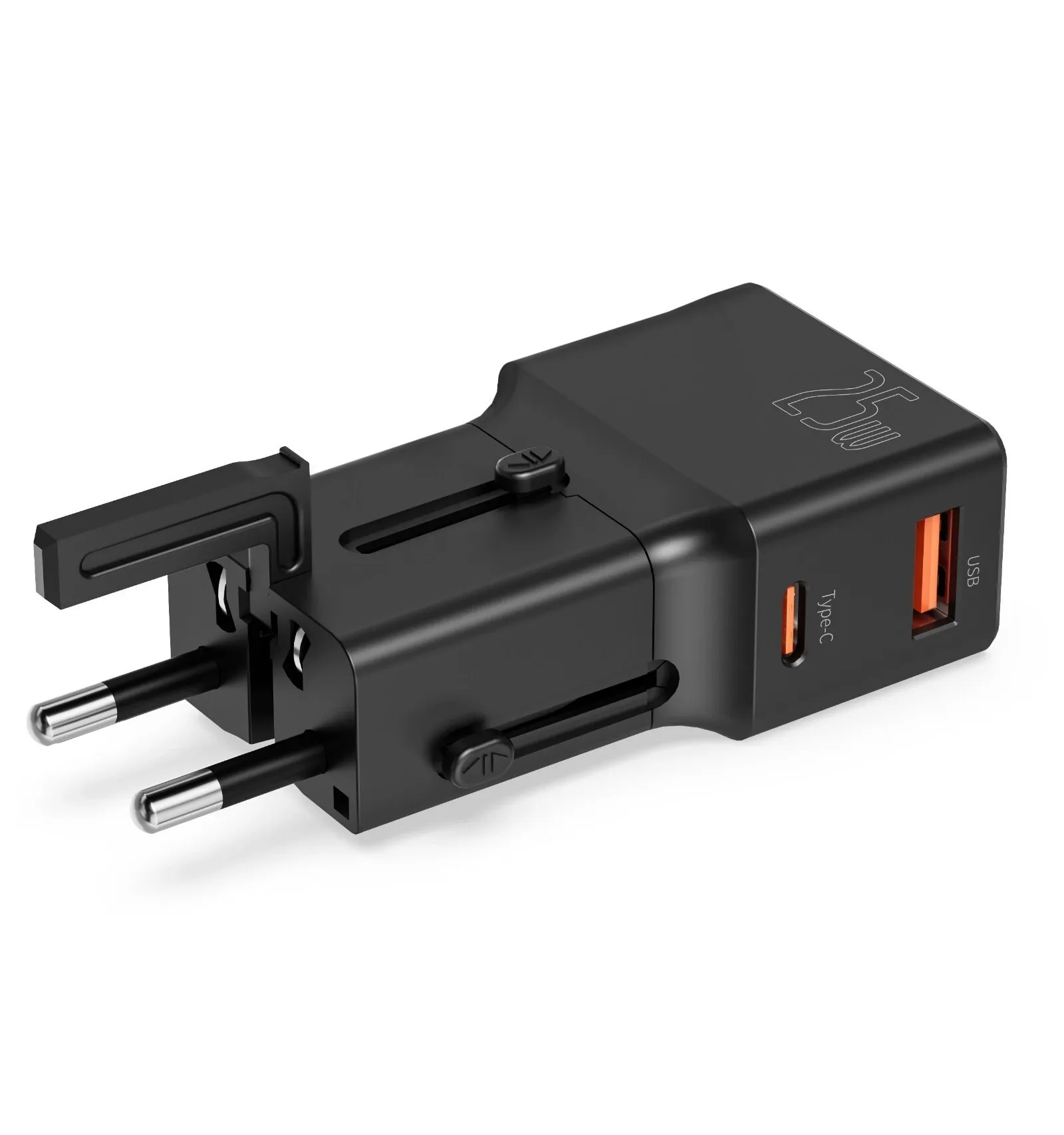 The 25W Fast Charger Universal International Travel Plug USB-C Slim is a compact and powerful charging solution designed for travelers. It supports fast charging up to 25W, making it ideal for smartphones, tablets, and other USB-C devices. Its slim, lightweight design easily fits into bags or pockets, while the universal plug compatibility allows use in multiple countries. Built with safety protection against overcharging and overheating, this charger ensures reliable and efficient performance wherever you go. Perfect for home, office, or travel use.