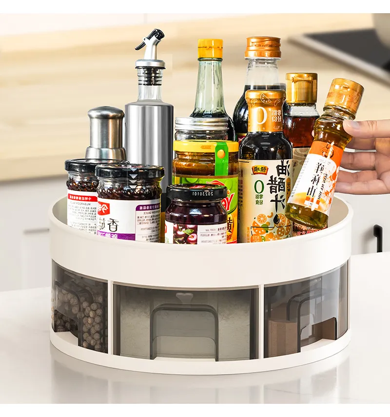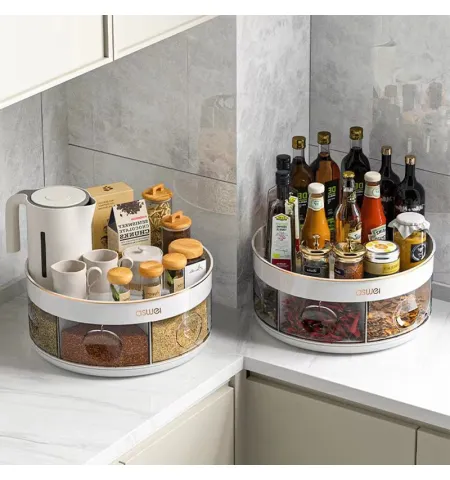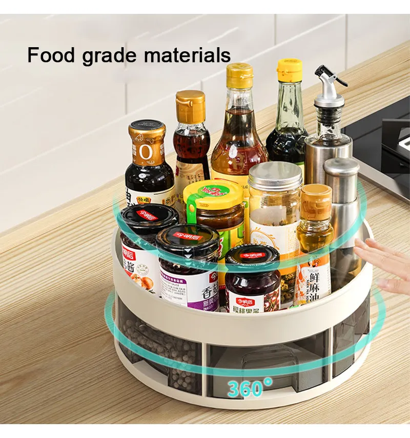 - 【Rotatable Design】 This kitchen organizer slides easily. Keep everything sorted and in view with just a few turns or the table. rotating storage space maximizes cabinet space and keeps the kitchen organized and tidy.