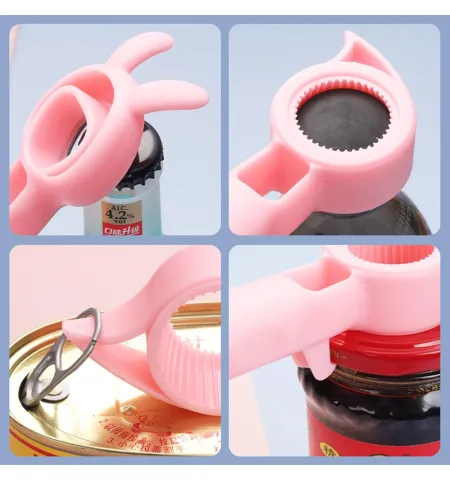 - Versatile kitchen tool designed to open different types of bottles and jars with ease