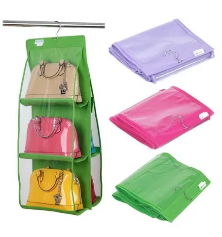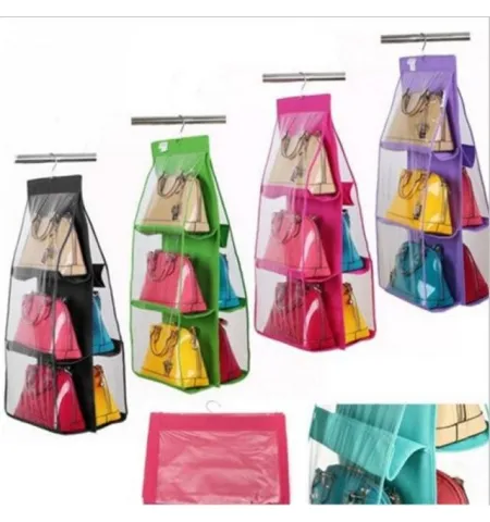 - Features 6 spacious compartments to neatly hold multiple handbags at once.