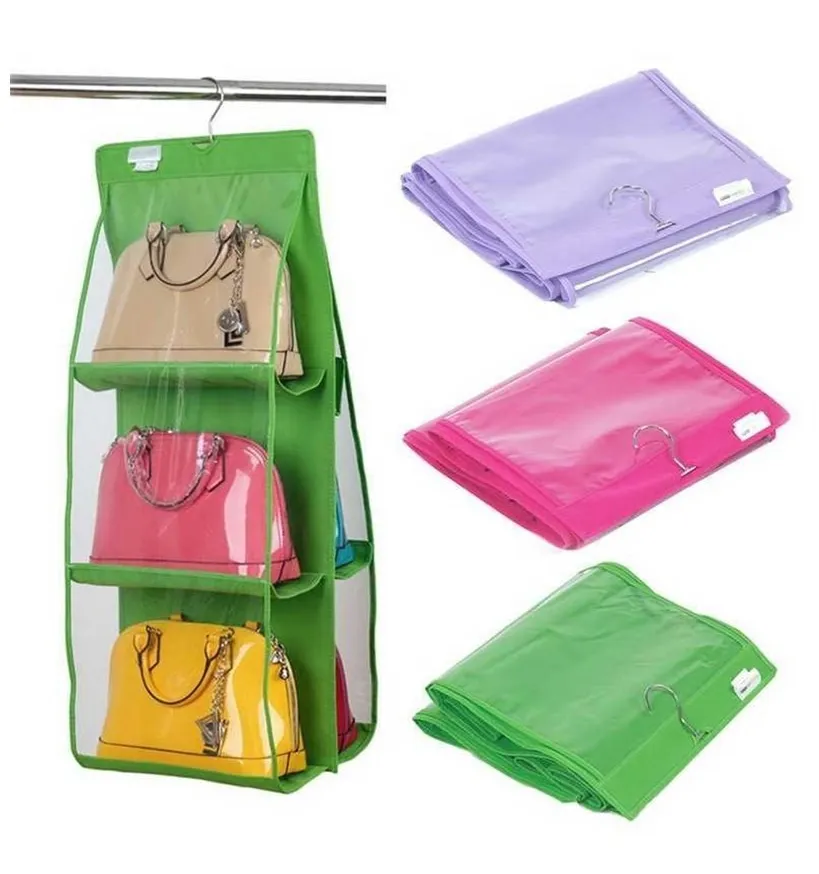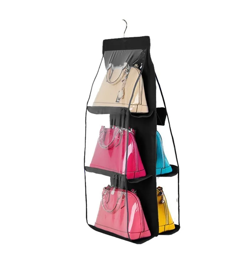 6-Pocket Hanging Handbag Organizer with Dust-Proof Transparent Storage for Wardrobe & Closet