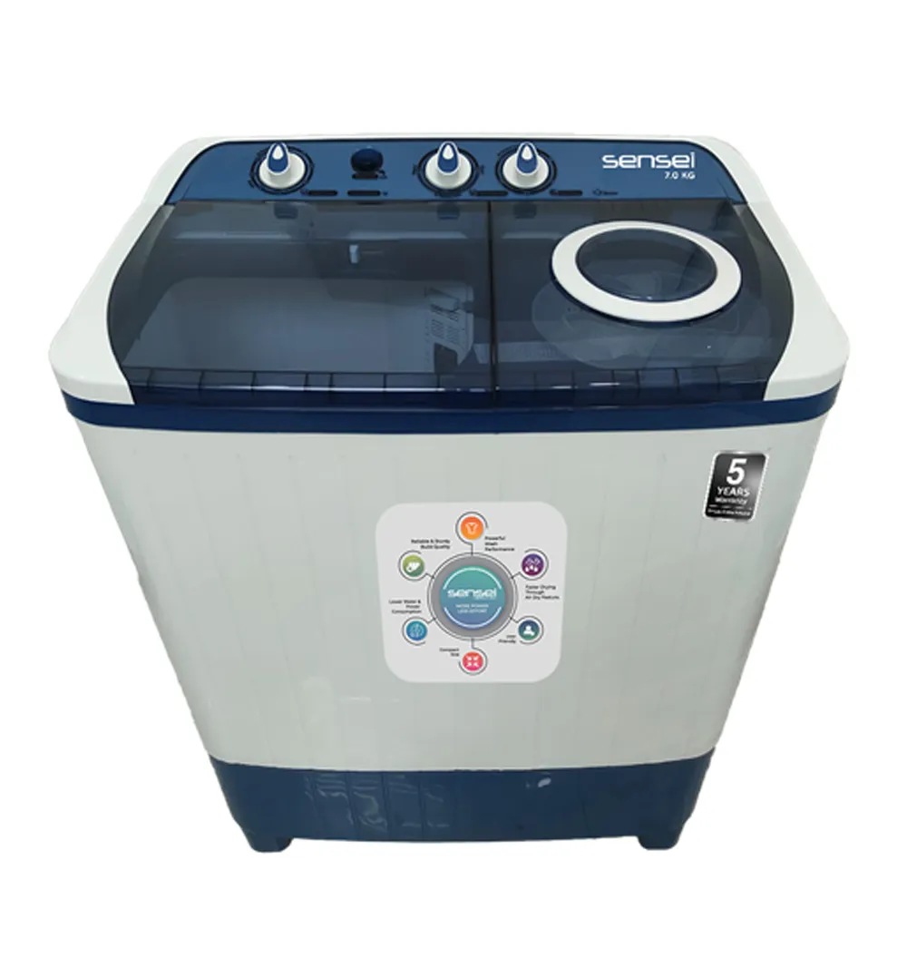 The Sensei 7 Kg Semi-Automatic Washing Machine is built for reliability and everyday convenience. With its compact design, powerful wash performance, and energy-efficient operation, it is ideal for small to medium households.