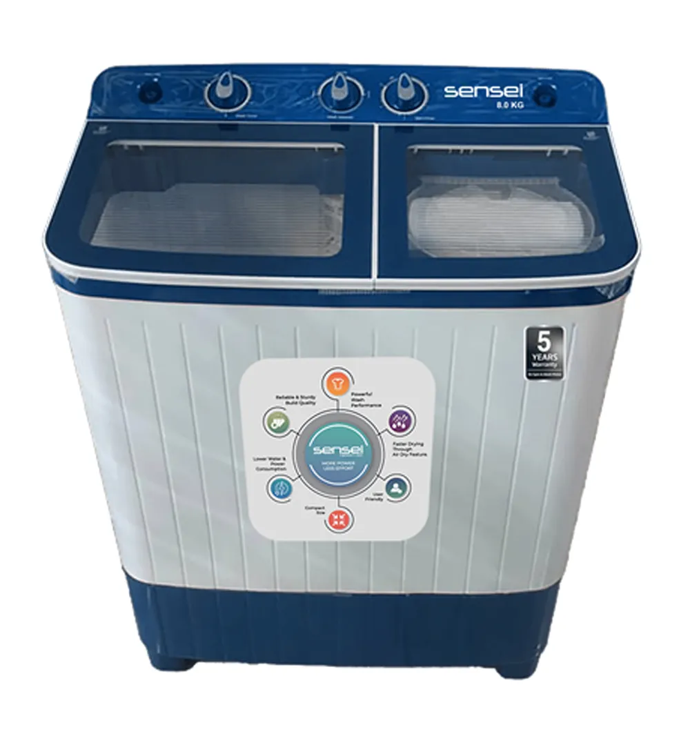 The Sensei 8 Kg Semi-Automatic Washing Machine is designed for reliable performance and convenience. Its compact design, powerful washing capability, and energy-efficient operation make it perfect for households looking for value and durability.