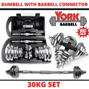 York 30Kg Adjustable Dumbbell Set With Barbell Connector