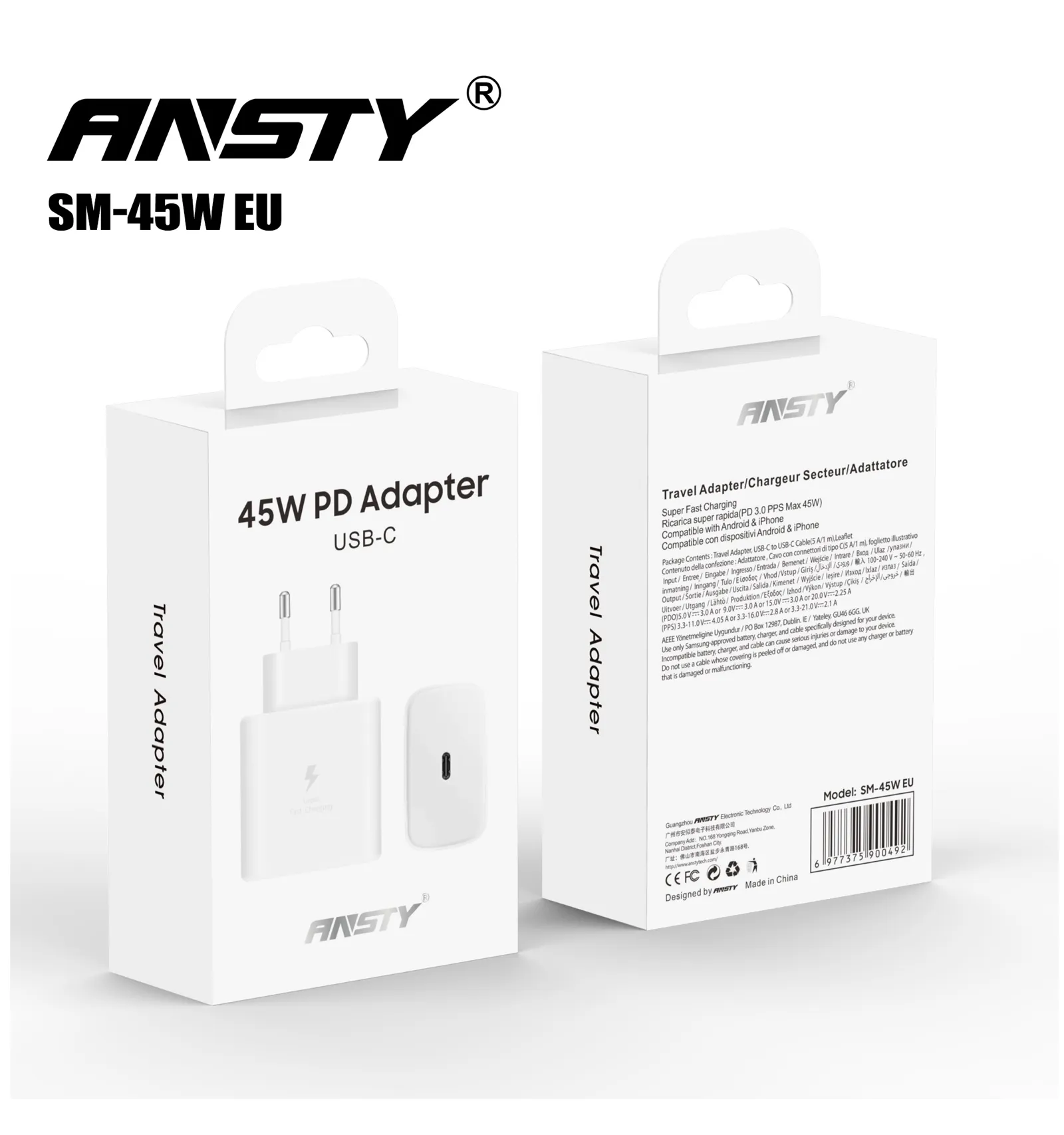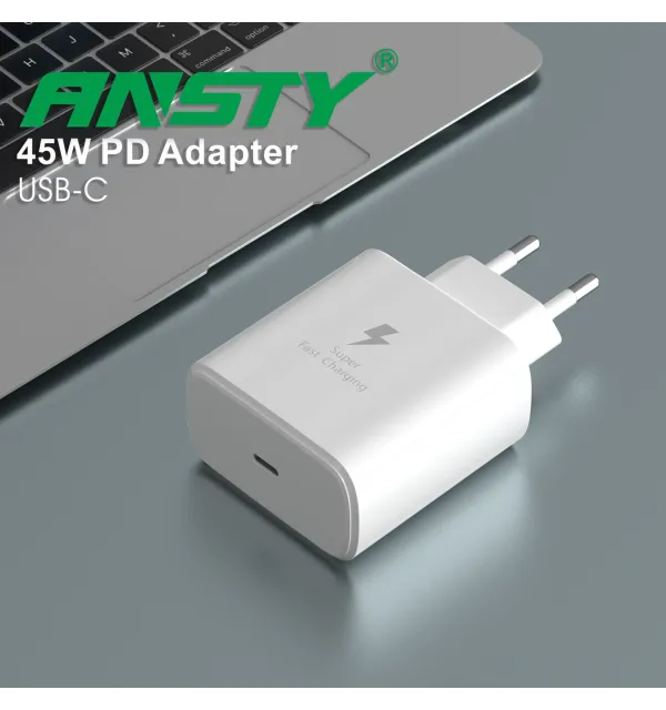 The SM-45W-EU is a 45W Type-C wall adapter designed for fast, efficient charging. Compact and travel-friendly, it supports USB-C Power Delivery for smartphones, tablets, and compatible laptops.