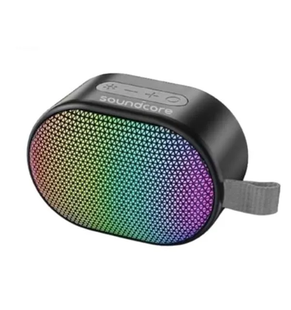 The Anker Soundcore Pyro Mini B2C speaker delivers powerful sound in a compact design, featuring BassUp™ technology, 10-hour playtime, Bluetooth 5.3, IPX7 waterproofing, and vibrant LED lighting effects.