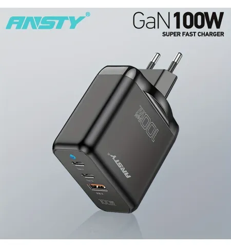 The GaN 100W 3-Port Fast Charging PD Wall Charger is a powerful and efficient charging solution designed for modern devices. Utilizing advanced GaN (Gallium Nitride) technology, this charger delivers faster charging speeds while remaining compact and energy-efficient.
