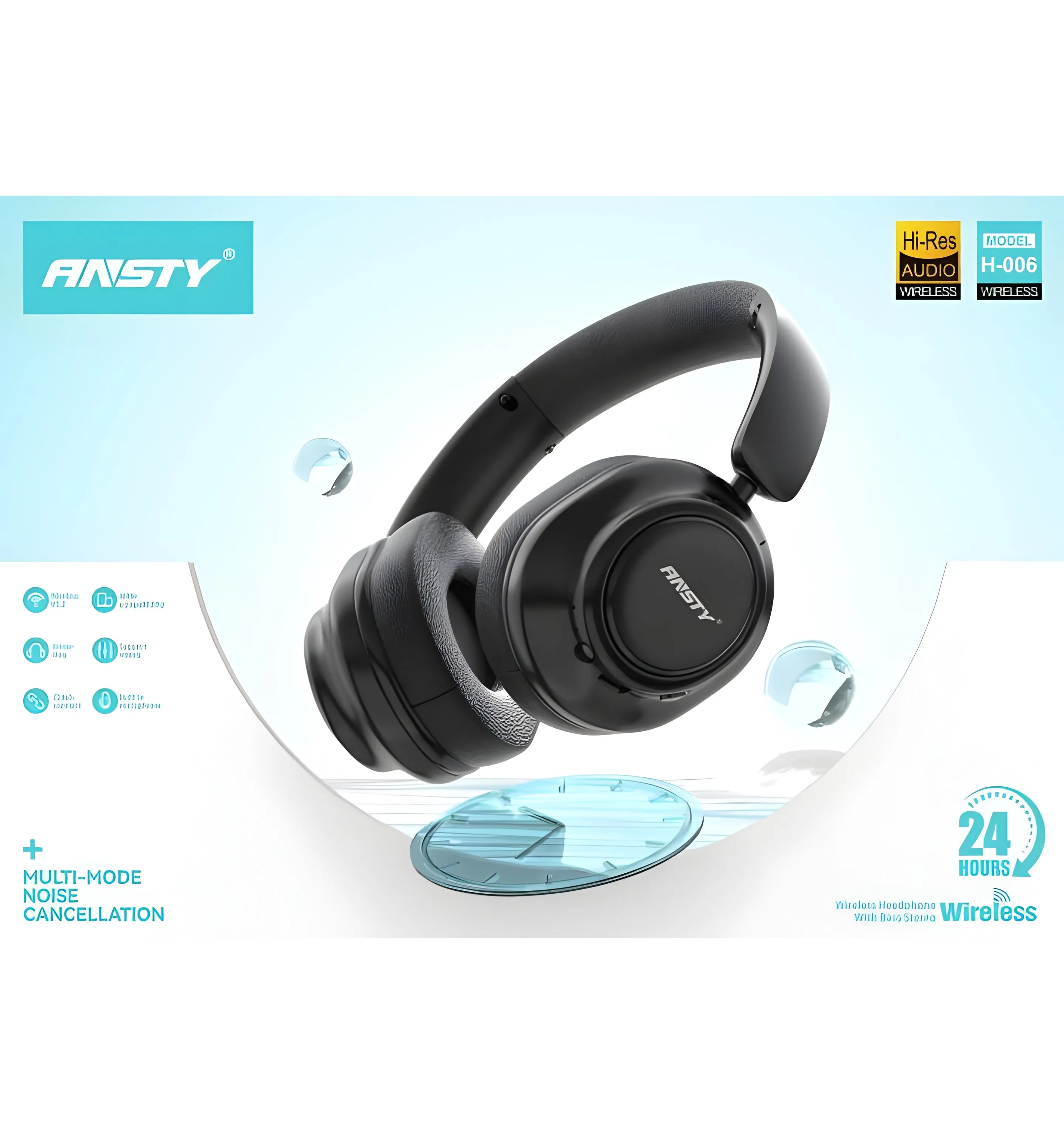Experience immersive sound with ANSTY H-006 Wireless Headphones. Featuring Bluetooth V5.3, deep bass stereo, and advanced multi-mode noise cancellation for clear audio and seamless connectivity on the go.