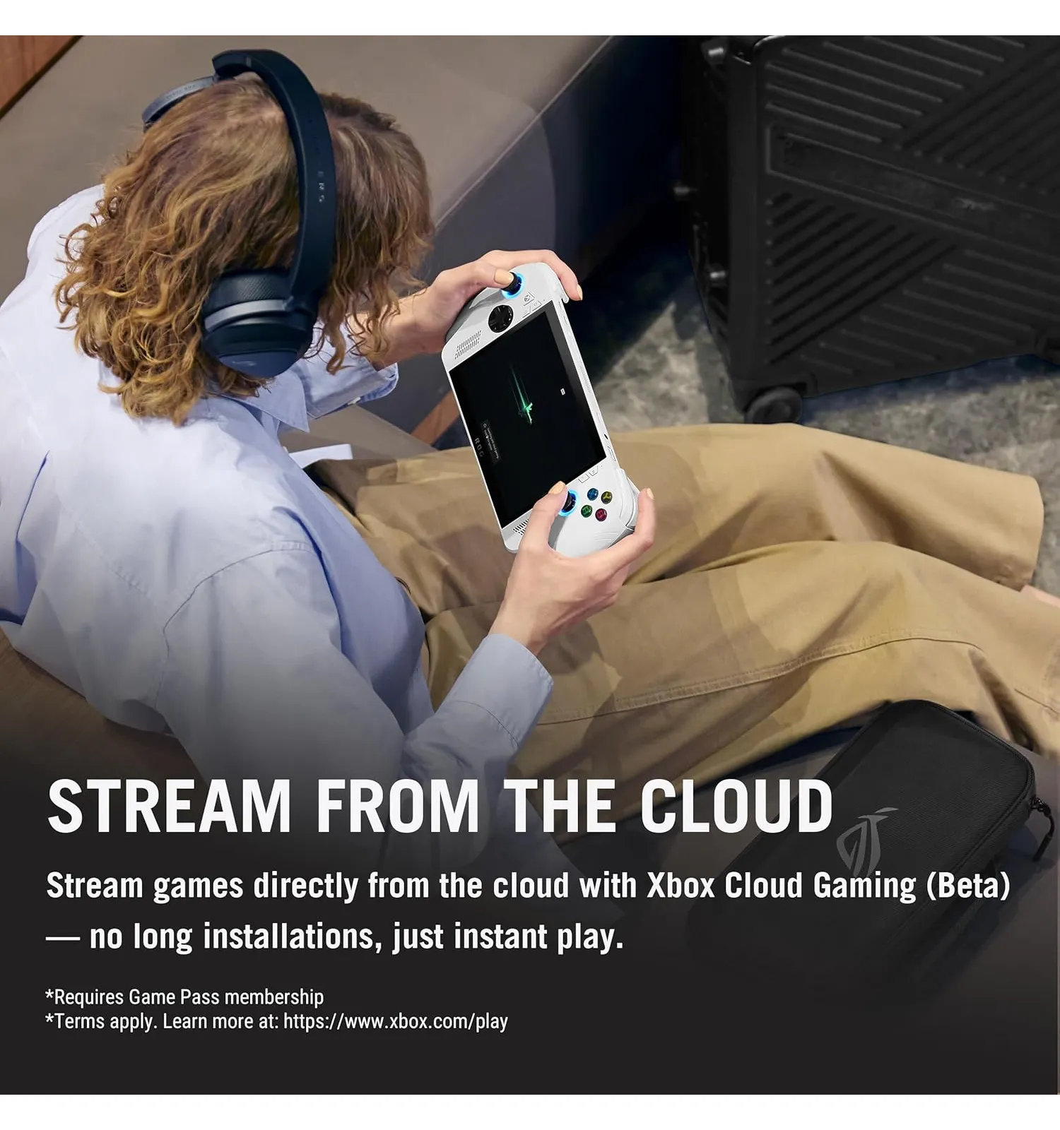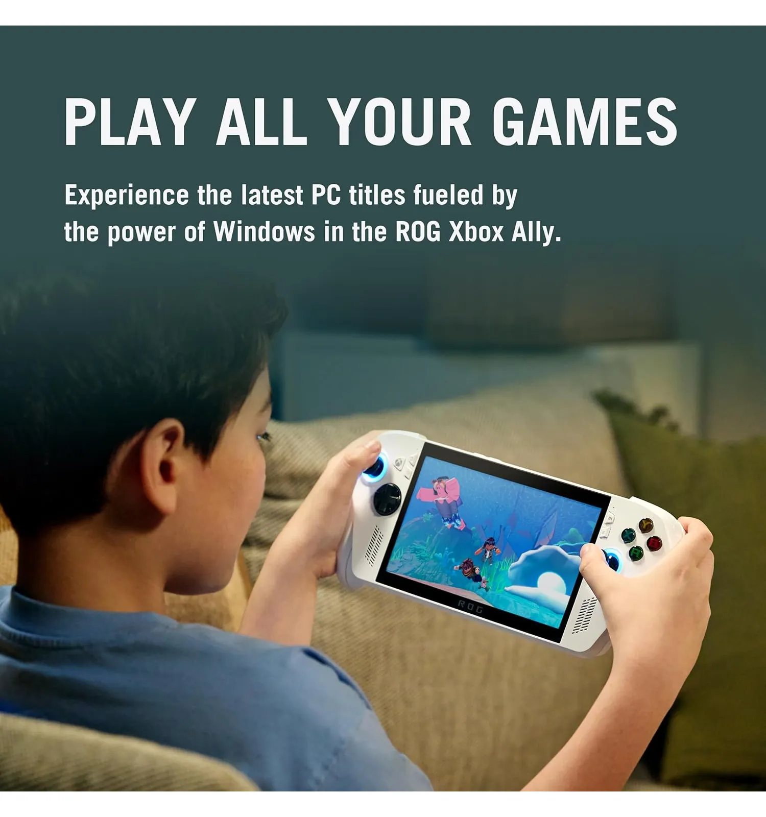 Experience the latest PC titles and games included with Game Pass fueled by the power of Windows in the ROG Xbox Ally.