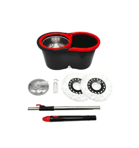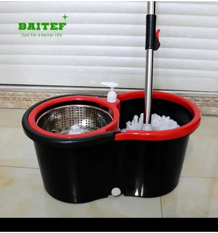 Separate sections for washing and spinning/drying the mop for cleaner water use.