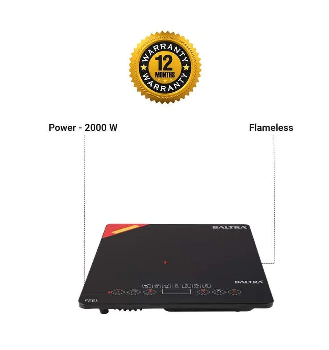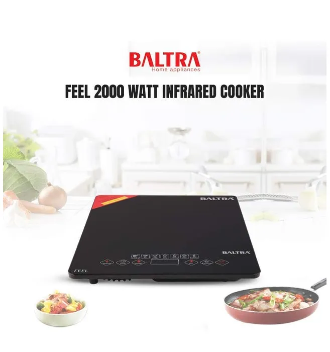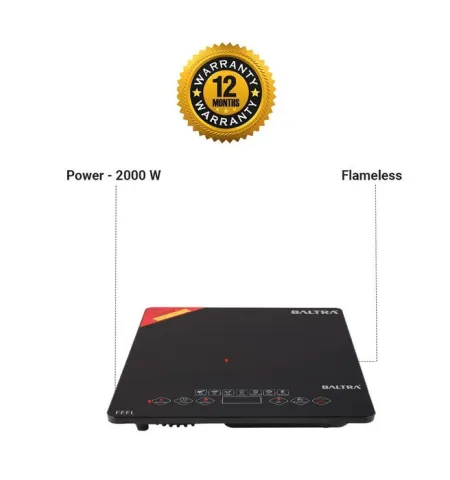 The Baltra Induction Cooktop BIC 114 uses advanced infrared technology to deliver fast, efficient, and safe cooking. It is suitable for both metallic and non-metallic cookware, making it a versatile kitchen appliance for everyday use.