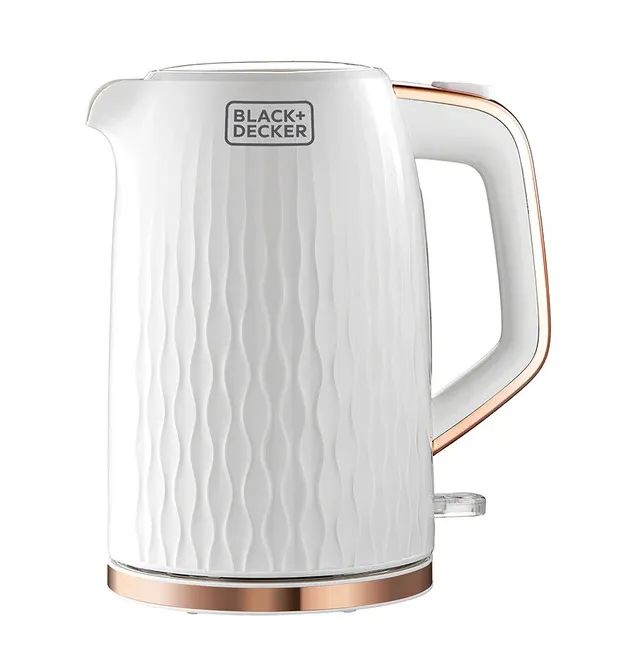The 1.7 Liter Electric Kettle (Model JC190W-B5) by Black+Decker is a powerful and efficient appliance designed for fast boiling and everyday convenience. It features a 2200W heating element that ensures rapid boiling performance. The cordless design with a 360° swivel base allows easy handling from any direction. Safety features include automatic shut-off and boil-dry protection for worry-free operation. The concealed heating coil ensures easy cleaning and improved durability. Additional features include a water-level indicator, removable nylon micro-mesh filter, cool-touch ergonomic handle, and wide mouth opening for easy filling and cleaning. The stylish wave-pattern textured finish adds a modern look to any kitchen. It comes with a 2-year comprehensive warranty.