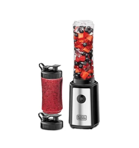 The 300W Sports Blender (Model SBX300-B5) by Black+Decker is a compact and high-speed blending solution designed for active lifestyles. It features a powerful 300W motor delivering up to 21,500 RPM for smooth and efficient blending. With its turbo speed function and stainless steel blades, it easily crushes ice and frozen fruits for smoothies and shakes. The set includes 6 essential pieces including 300ml and 500ml Tritan sports bottles with sip & seal lids for on-the-go convenience. Designed with ergonomic bottle structure, anti-slip feet, and dishwasher-safe components, it ensures ease of use and cleaning. It is ideal for fitness, travel, and daily nutrition needs and comes with a 2-year warranty (excluding plastic parts).
