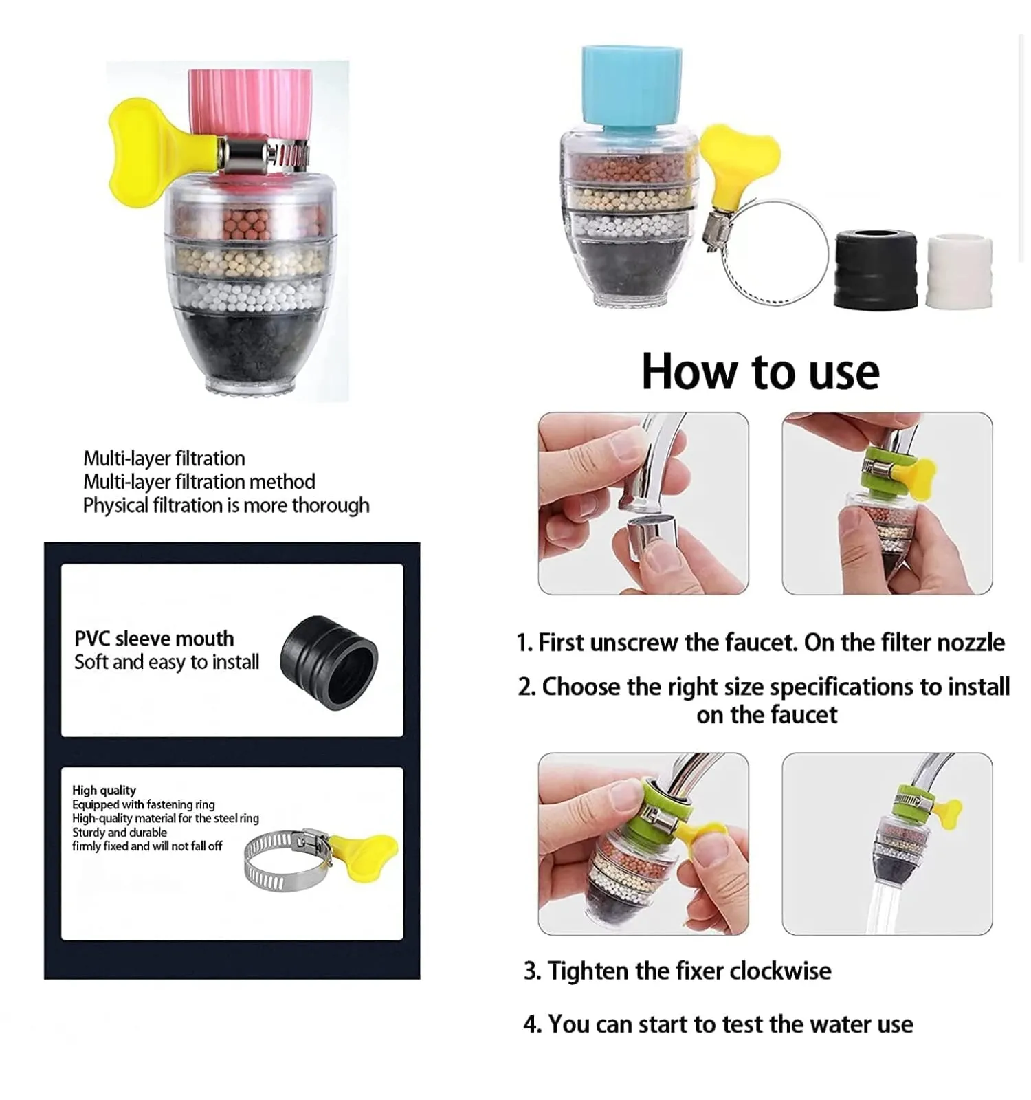 - Easy Installation: Designed for quick and hassle-free attachment to most standard kitchen and bathroom taps.