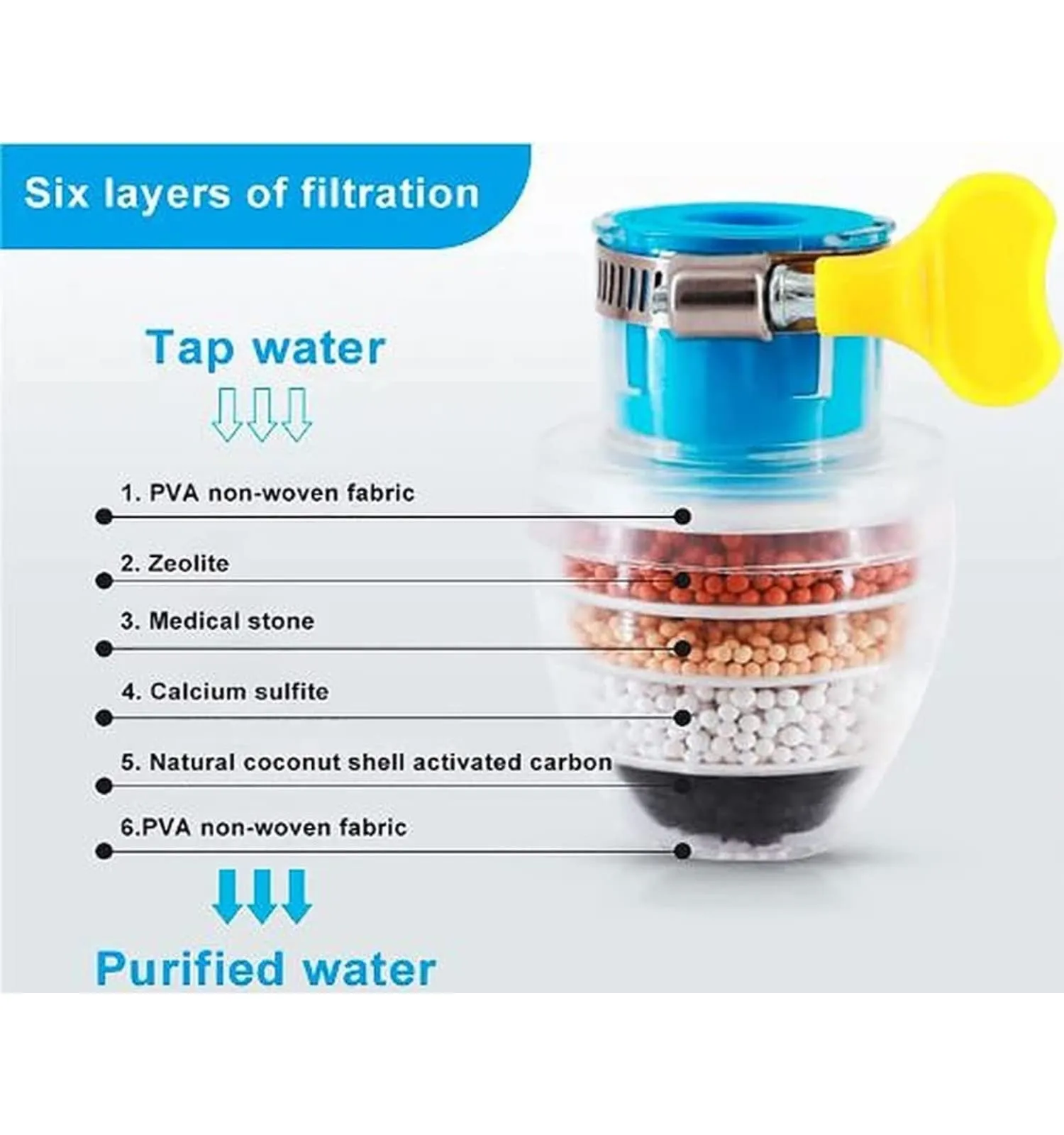 Coconut Carbon 5-Layer Faucet Water Purifier Filter Cartridge for Home and Kitchen Tap – Easy to Install and Clean