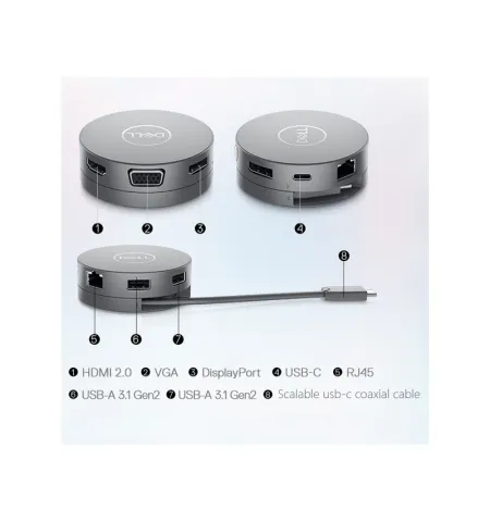 The Dell 7-in-1 USB-C Multiport Adapter is a compact and portable multiport 7-in-1 adapter that can connect to just about any device you have. Its downstream USB-C port supports power pass-through and is ideal when your laptop does not have any more USB-C charging ports.
