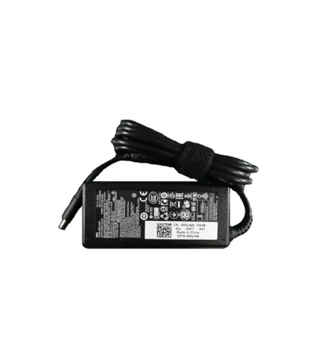 This genuine Dell adapter incorporates a rubber strap for easy cable management and an LED light ring on the DC connector for visible connection status.