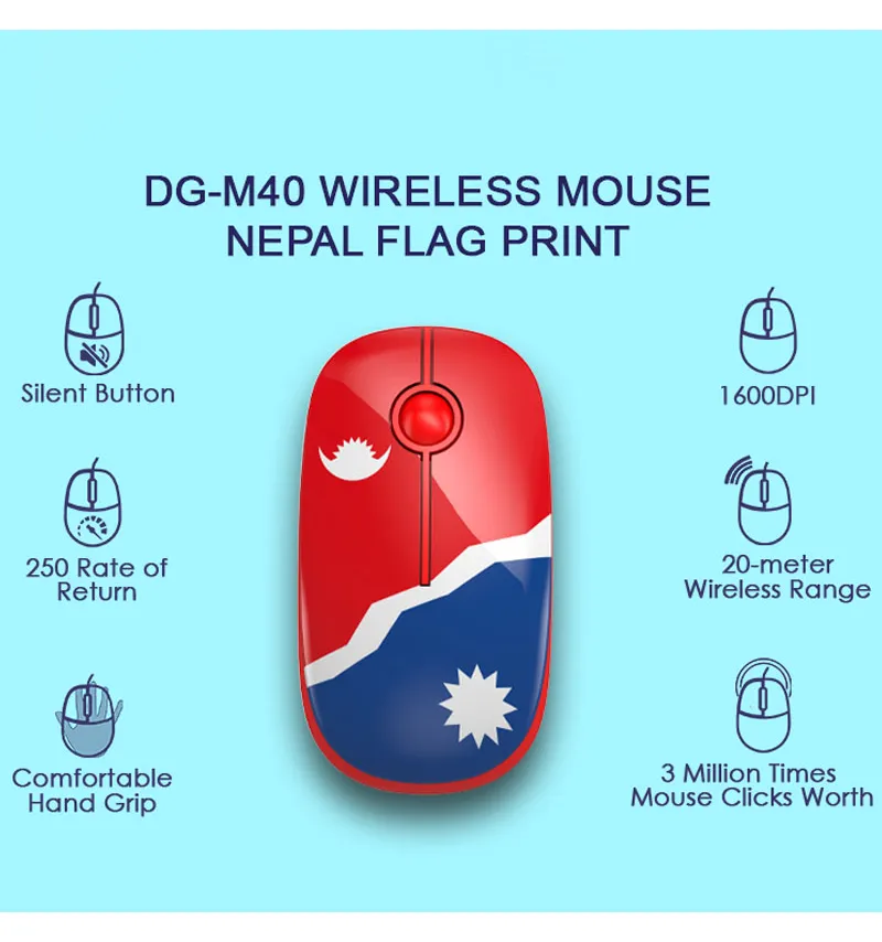 The Digicom DG-U40 Optical Mouse is a stylish and reliable everyday mouse designed for smooth performance and comfortable use. Featuring a unique Nepal flag design, this mouse combines functionality with national identity, making it perfect for both home and office setups.