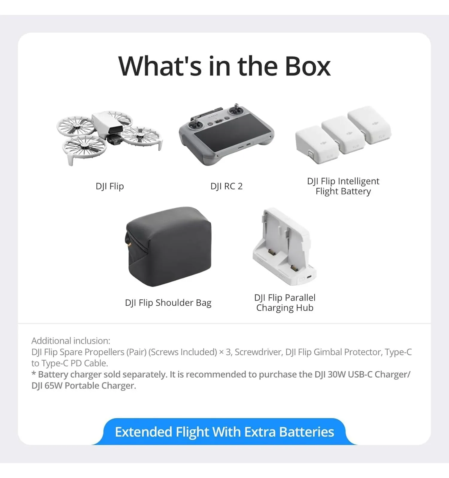 - Fly More Combo includes 3 batteries for extended usage