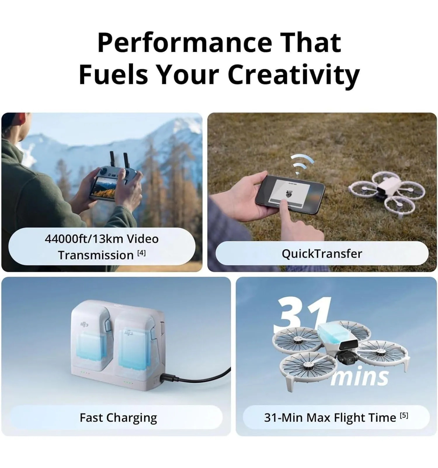 - Up to 31 minutes flight time per battery