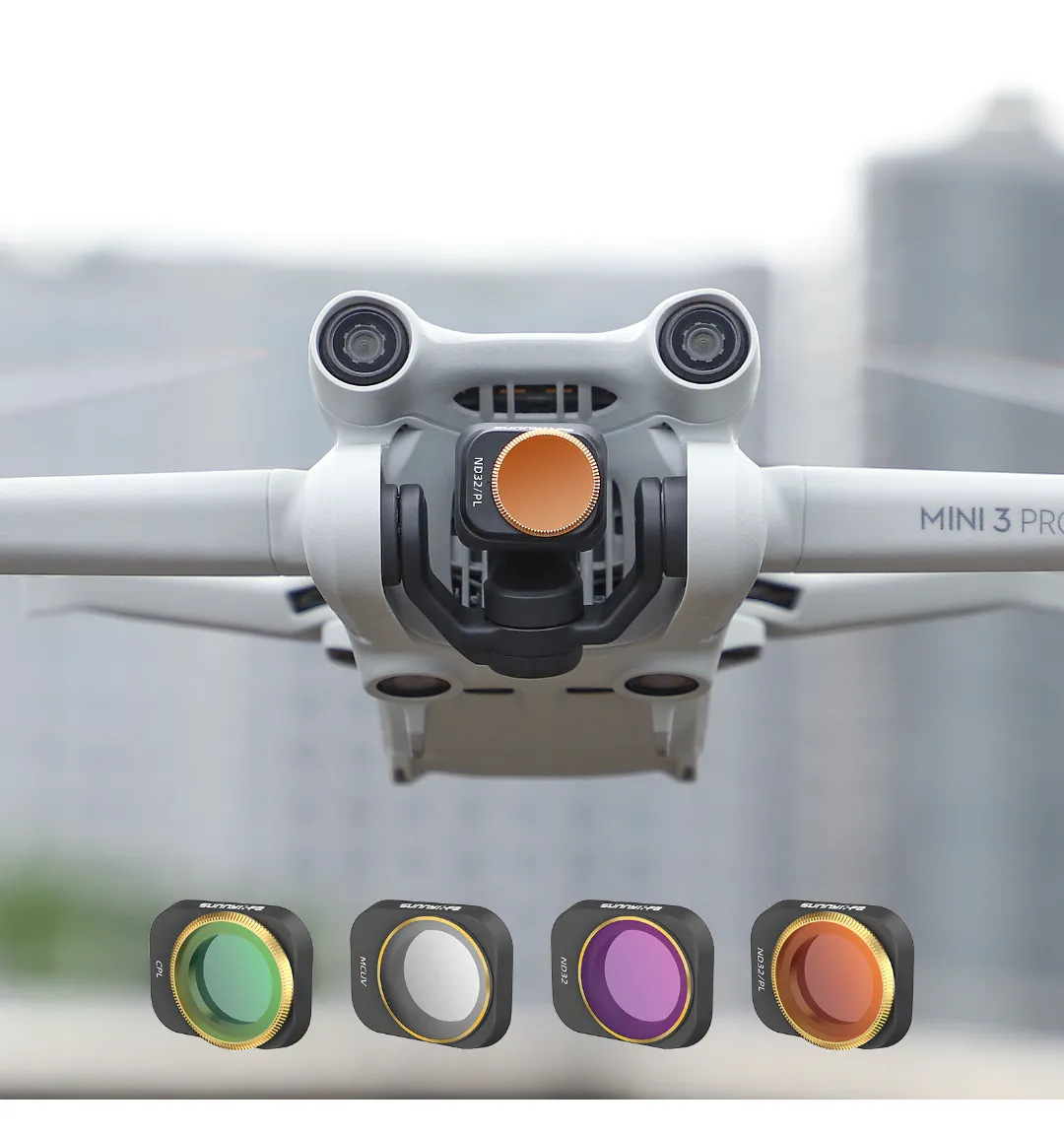 Upgrade your aerial photography game with the Mini 3 Pro Filters Drone Camera Lens Filter Set Kit. Specifically designed for the Mini 3 Pro drone, this kit is a must-have for capturing stunning shots from above. Crafted with high-quality optical glass, these filters provide exceptional image clarity and color accuracy, ensuring that your photos and videos are of the highest professional quality. The waterproof design adds an extra layer of protection, allowing you to capture breathtaking footage even in challenging weather conditions. The Mini 3 Pro Filters Drone Camera Lens Filter Set Kit includes a range of essential filters to cater to various lighting and shooting conditions. The set consists of MCUV, CPL, ND4, ND8, ND16, and ND32 filters, offering versatility and flexibility in your photography. Whether you're shooting in bright sunlight, reducing glare, or experimenting with long exposure shots, this kit has you covered. With its dustproof feature, you can trust that your filters will remain clean and free from unwanted particles, ensuring pristine image quality. The compact size of the filters makes them easy to carry and store, allowing you to take them on your drone adventures without any hassle. Each filter in the Mini 3 Pro Filters Drone Camera Lens Filter Set Kit is designed to perfectly fit the lens of the Mini 3 Pro drone, ensuring a secure and stable attachment. The package includes all the necessary filters to enhance your photography experience right out of the box. Elevate your aerial photography to new heights with the Mini 3 Pro Filters Drone Camera Lens Filter Set Kit. Experience exceptional image quality, protection, and versatility for your Mini 3 Pro drone. Upgrade your drone accessories today and unlock the true potential of your aerial shots.