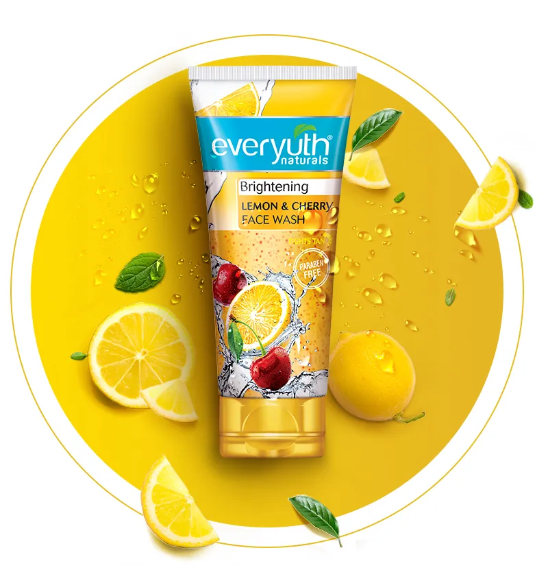 New Everyuth Naturals Brightening Lemon & Cherry Face Wash brings together the Vitamin C rich lemon and brightening cherry extracts. It washes away excess oil without making it too dry. Skin looks brighter. Regular usage helps in fighting tan too.