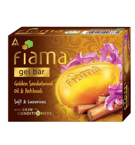 - Fiama Golden saldalwood oil and patchouli gel bar makes your skin soft and gives a radiant glow, it has notes of Patchouli flowers which makes your day bright and happy with its luxurious fragrance