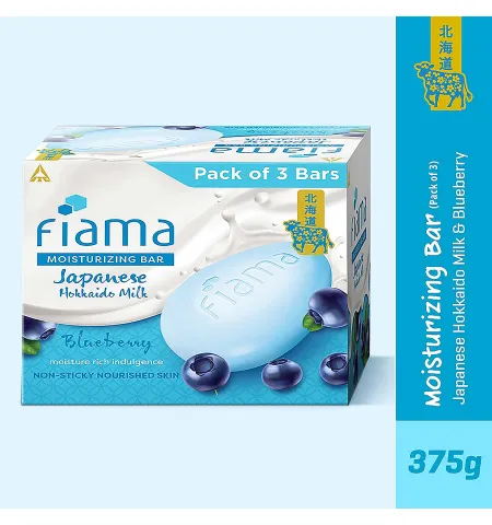 Fiama Moisturising Bar, Japanese Hokkaido Milk & Blueberry, 125g, moisture rich indulgence, non-sticky nourished skin, 1/3rd skin moisturizers, has vitamin F, mood uplifting fragrance