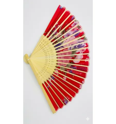 Key Features: Features a vibrant red and pink floral pattern with traditional carved bamboo guards and an easy-open/close hinge.