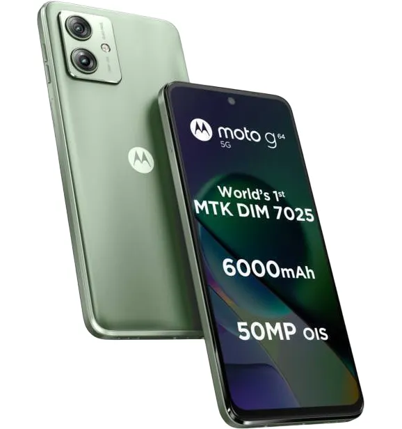 Discover the ultimate 5G experience with the Motorola Moto G64 5G. Powered by the advanced MediaTek Dimensity 7025 processor and a massive 6000mAh battery, this smartphone redefines mid-range performance. Enjoy ultra-smooth scrolling on a 120Hz FHD+ display and capture professional-grade photos with its 50MP OIS camera. Built with an IP52 water-repellent design, the Moto G64 5G delivers speed, reliability, and durability in one powerful package.