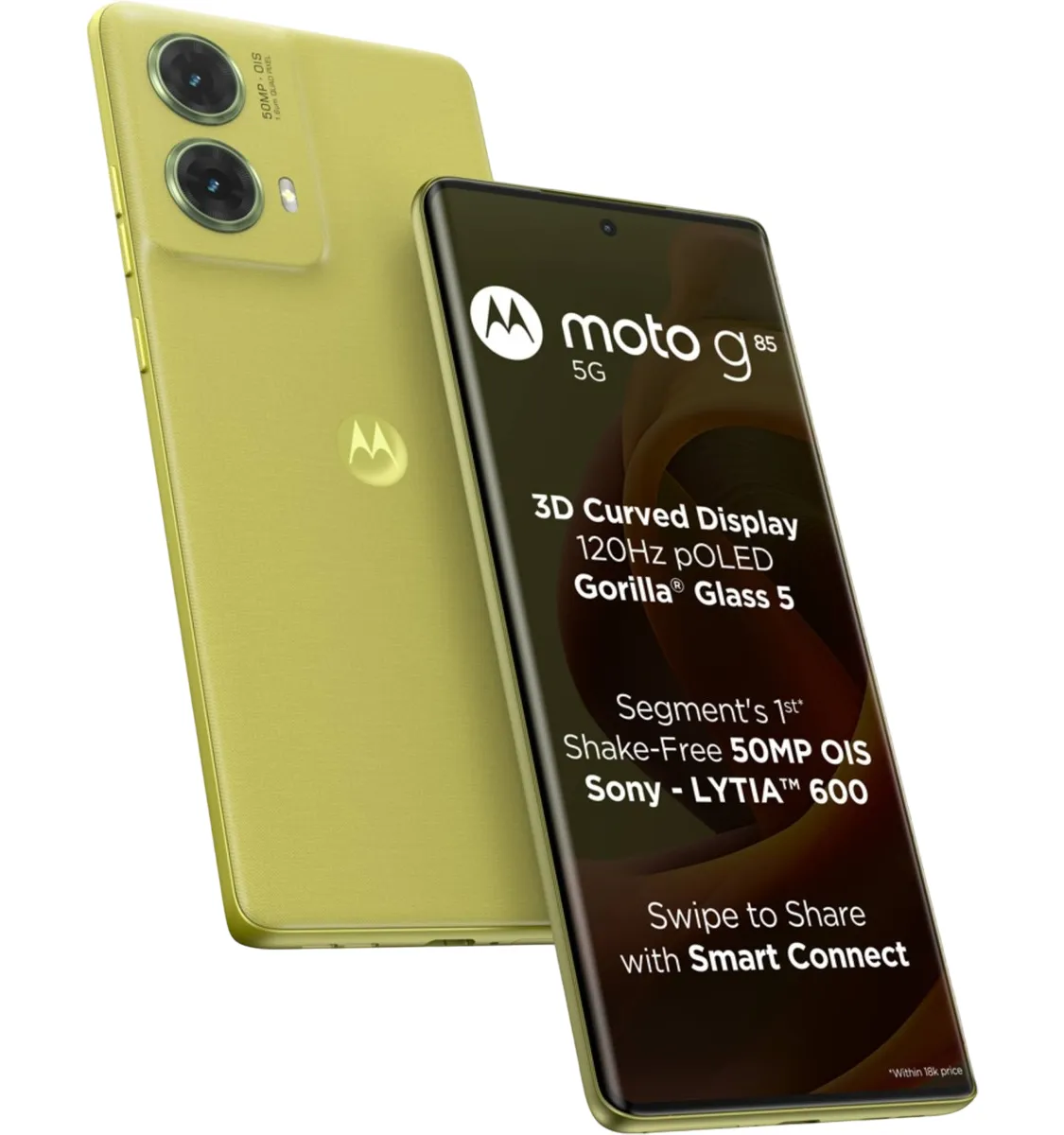 The Moto G85 5G features a stunning 6.67-inch 3D Curved pOLED display with a smooth 120Hz refresh rate. Supporting 10-bit colors and 100% DCI-P3 gamut, it delivers vibrant visuals with deep contrast. With up to 1600 nits peak brightness and Corning Gorilla Glass 5 protection, the screen remains clear and durable even in outdoor conditions.