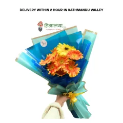 Product Descriptions This product contains: Natural farm-fresh flowers 8 stems orange/yellow gerbera Premium double-coloured double-layer wrapper