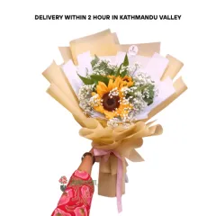 Product Descriptions This bouquet contains: Natural, farm-fresh flowers 2 stems sunflower Baby’s breath Creamy & white butter double-layer wrapper