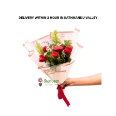 Simple wrapped Roses Bouquet 5 stems of roses Surprise your loved ones with farm-fresh roses on special occasion like birthday, anniversary, Rose Day, Valentine Day
