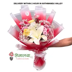 Product Descriptions Natural farm-fresh flowers Lily, daisy & gerbera mix bouquet Baby’s breath Premium red wrapper Flat design