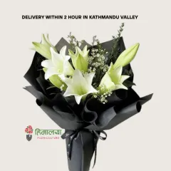 Product Descriptions This product contains: Natural, farm-fresh flowers 2 stems of white lily Baby’s Breath Premium black wrapper Wrapper color can be customized.