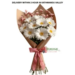 Product Descriptions This bouquet contains: Natural, farm-fresh flowers 9  stems White daisy/gerbera White statice Premium wrapper