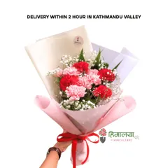 Product Descriptions Natural farm fresh flowers 10 Stems red & pink carnations Baby’s Breath Mix butter wrapper