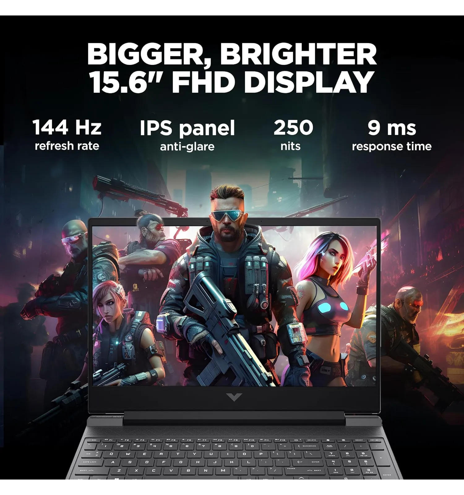 15.6 inch FHD IPS anti-glare panel at 144Hz with micro-edge design delivers smooth motion, sharp visuals, and wide viewing angles for gaming and entertainment.