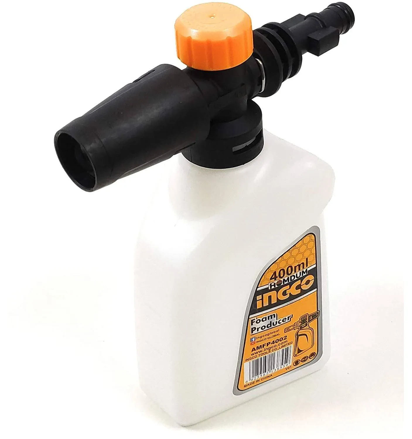 Ingco Car Washer Snow Foam Lance Bottle Foam Producer 400 ml Car Shampoo Soap Dispenser.EASY TO INSTALL-Fill some soap into the bottle with warm water to get thick foam; Then connect 1/4" quick connection plug to pressure washer gun or wand. Specification for pressure washer: 1000 PSI to 3600 PSI. Finally, adjust the knob to desired foam level and then the snow foam lance will disperse thick foam. EXCELLENT QUALITY-The bottle body is made of strong PA, durable and difficult to damage, and the adapter is made of engineering plastics, which can be used for a long time. Foam spray gun with foam adjustment knob and spray angle knob. STRONG CLEANING POWER- The dense and rich foam has a strong cleaning power and can easily melt stains on rods and paint, thus reducing swirl marks and scratches SAVE TIME AND EFFORT- Compared with the traditional car washing method, it is a touchless car wash, it can produce rich thick foam, help to clean faster, save a lot of cleaning time and energy. COMPATIBILITY AND USAGE - Homdum ingco foam spray guns can be used in cars, motorcycles, floors, windows, driveways, roofs, siding cleaning, etc. Compatible with all ingco car washers.