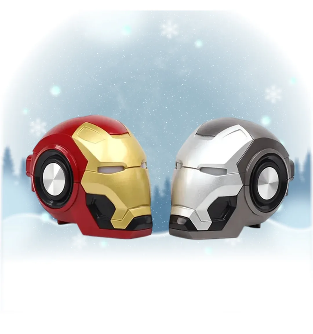The Iron Man Mark 46 Helmet Bluetooth speaker features a 10W stereo channel, LED lights, and SD card support. It combines high-quality sound with a multicolor, iconic Iron Man design.