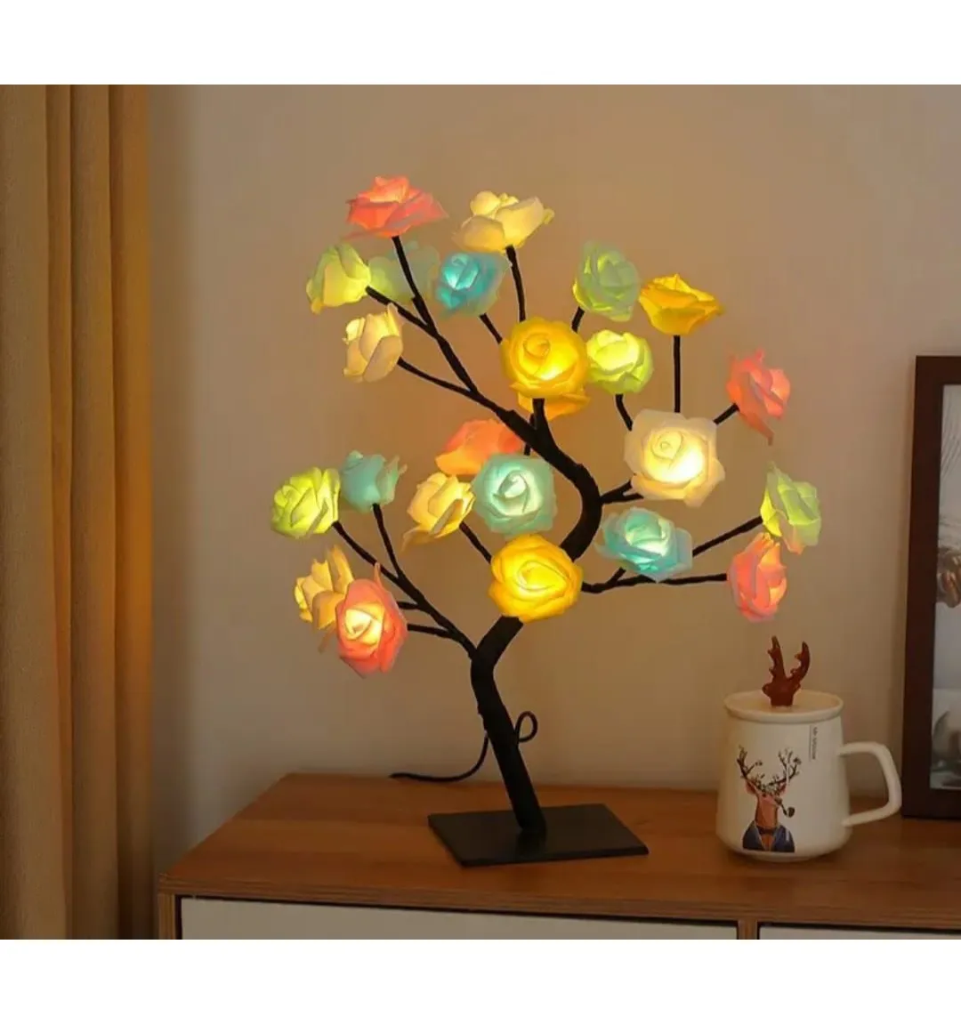 - 【Rose Tree Lamp】 This rose tree lamp is equipped with 24 LED rose petals that look stunningly elegant when lit at night and it gives just the right amount of light to lit up the entire room without being too glaring or too dim.