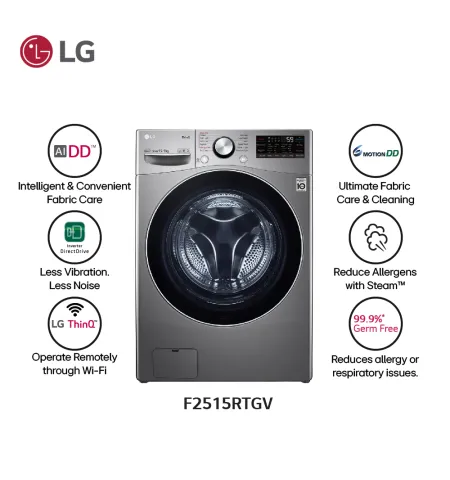 LG 15 Kg Washer & 8 Kg Dryer Front Load (F2515RTGV)