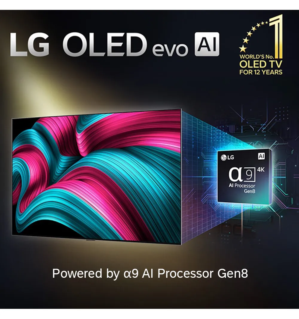 The LG 55" OLED evo C5 Series delivers a premium cinematic and gaming experience with perfect black levels and ultra-accurate color reproduction powered by self-lit OLED pixels.