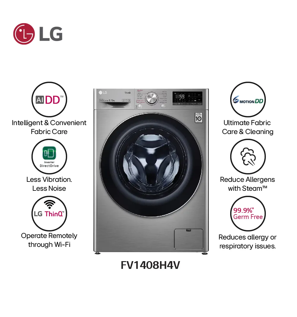 LG 8 Kg Washer & 6 Kg Dryer Front Load (FV1408H4V)