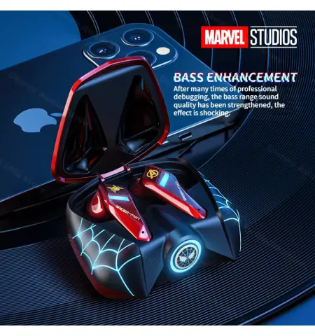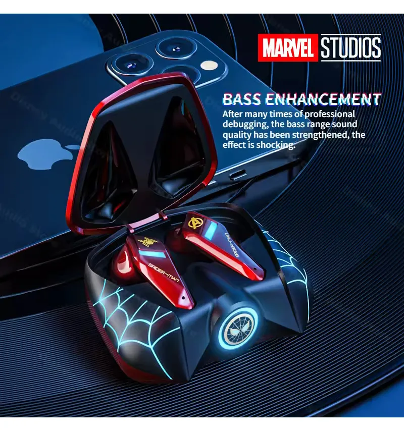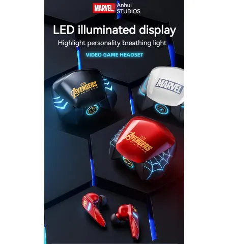 Marvel Avengers Endgame BTMV 15 earbuds feature iconic Avengers-themed design, delivering high-quality sound, comfortable fit, and wireless Bluetooth connectivity, perfect for fans and music lovers alike.