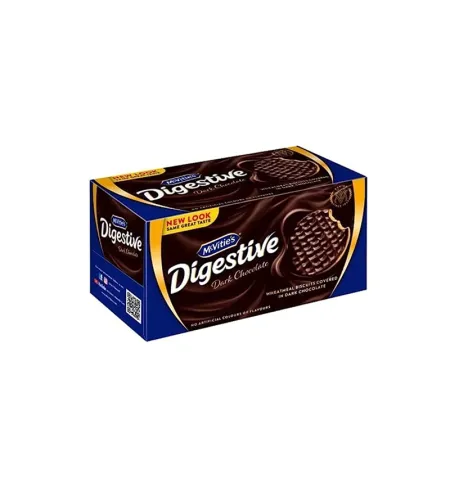 Very British. McVitie's Digestive Dark Chocolate are the popular classics from England. The crispy wheat biscuits are covered on half sides with fine dark chocolate and score points with their intense aroma. Try the pastry with a glass of milk, a cup of coffee or make it like the British and dip the specialty into a tasty tea.