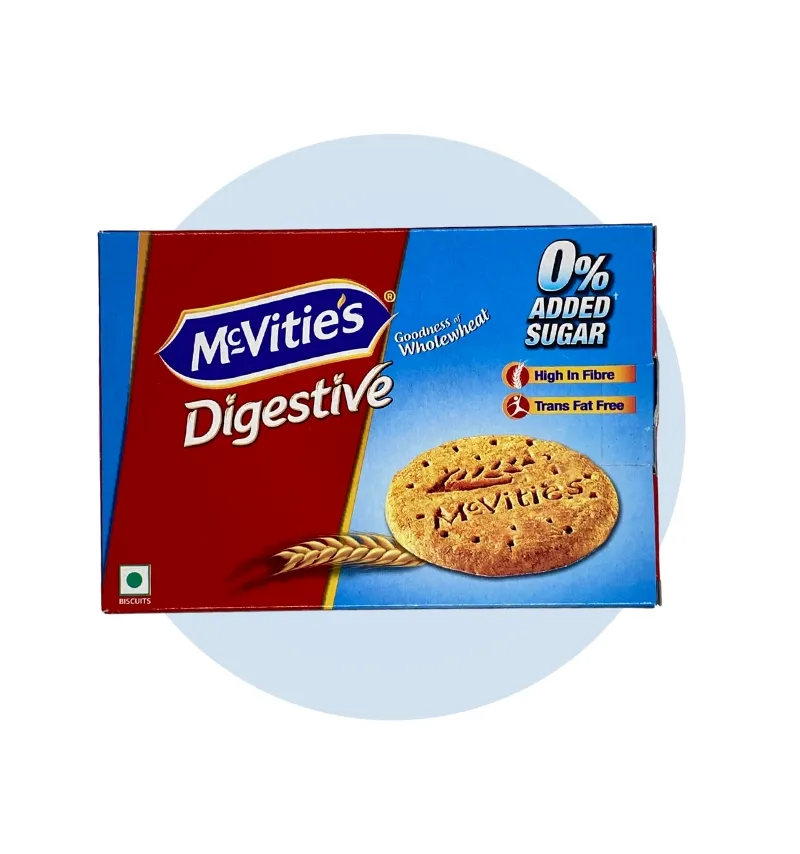 - McVitie’s Sugar-Free Digestive biscuit, contains zero added sugar, is high in fibre and trans fat free
