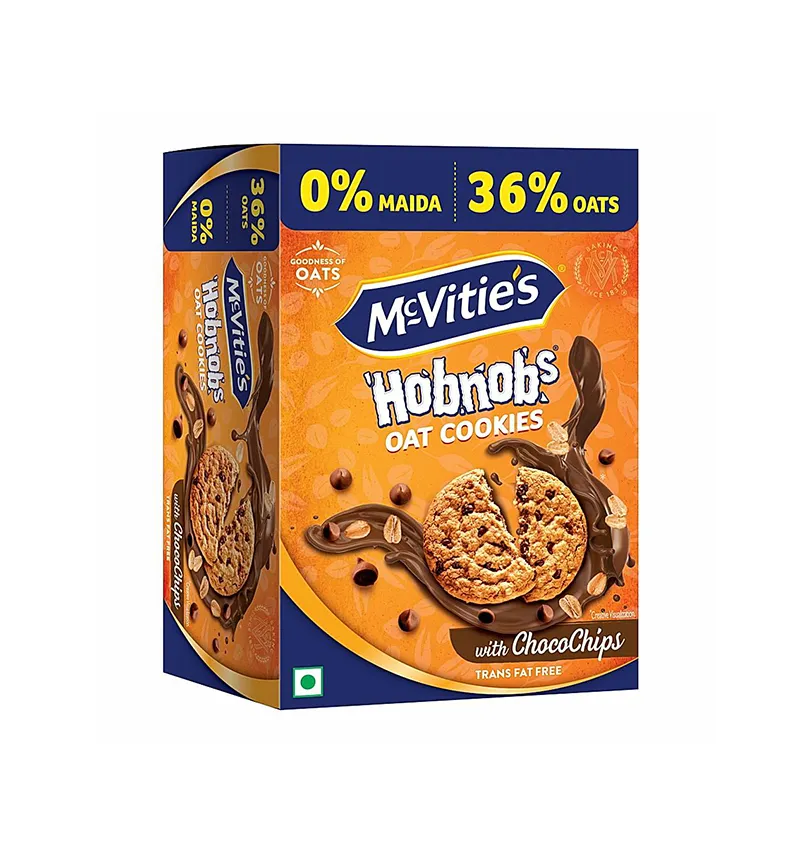 Indulge in the ultimate balance of flavour and nutrition with McVitie's Hobnobs Crunchy Chocochip Cookies. These delightful treats are made with 0% Maida and a generous 36% Oats, redefining the snacking experience. Enjoy the irresistible combination of a satisfying crunch from the crunchy oats and the decadent richness of the choco chips in every mouthwatering bite. With a perfect harmony of sweetness and texture, these cookies provide a guilt-free indulgence that will leave you craving more. Ideal for snacking anytime, anywhere, McVitie's Hobnobs Crunchy Chocochip Cookies are a true delight for the senses, offering a satisfying and wholesome snacking option that is sure to spread joy, especially for your little ones.